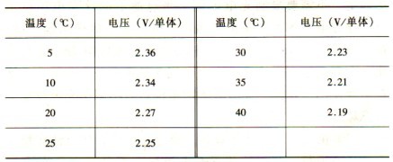 (3)注意檢查各單體電池問溫度變化,個(gè)別電池與整體電池溫差超過3℃,有可能導(dǎo)致該電池所需浮充電流的增大,所以設(shè)備環(huán)境溫度非常重要,最佳運(yùn)行溫度為25℃,一般保證工作環(huán)境溫度在20~25℃之間。達(dá)不到者應(yīng)采用空調(diào)補(bǔ)助措施,或進(jìn)行溫度補(bǔ)償。因?yàn)榄h(huán)境溫度低于25℃時(shí),電池容量減少,壽命延長,環(huán)境溫度高于25℃時(shí),電池容量增加而壽命縮短。電池避免安放在太陽直曬或溫差較大的環(huán)境中。以25 cC為準(zhǔn),環(huán)境溫度每升高l℃時(shí),浮充電壓降低0.003V/單體;環(huán)境溫度每降低1 cC時(shí),浮充電壓升高0.003v/單體;如果環(huán)境溫度變化超過l0℃,而沒有修正浮充電壓,將可能導(dǎo)致電池?fù)p壞。溫度補(bǔ)償參數(shù)見表3-3。