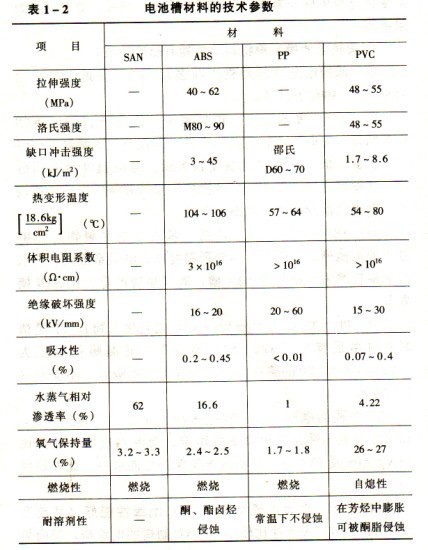 (2)ABS(丙烯腈、丁乙烯、苯乙烯的共聚物)。ABS制成的電池槽,硬度大,熱變形溫度高,電阻系數(shù)大。但水汽泄漏較嚴(yán)重,稍好于SAN槽;氧氣滲透嚴(yán)重,比SAN槽要差。