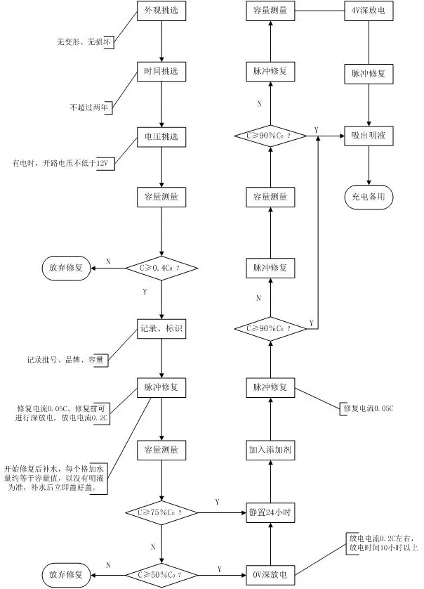 判——就是對初選合格的電池進行檢查判斷,繼續(xù)剔除難以修復的電池;然后根據電池的具體情況,選擇合適的修復流程對電池進行修復。